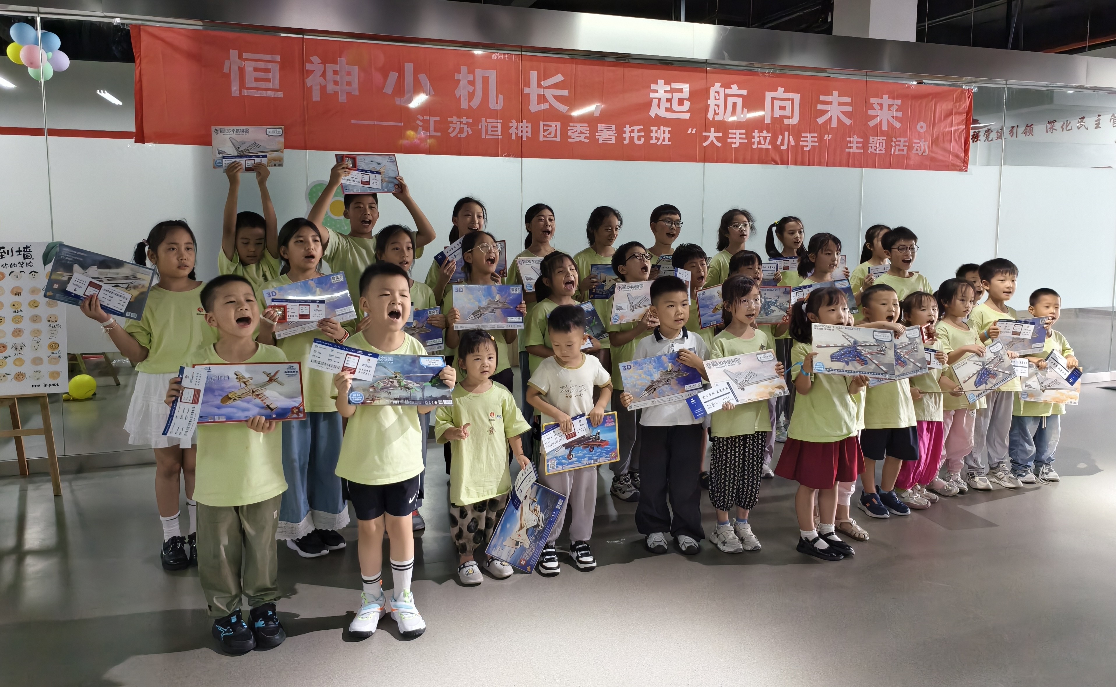 8月12日下午,恒神股份愛心暑托班的活動(dòng)場(chǎng)地變身歡樂航空港,約50名職工子女化身 “恒神小機(jī)長”,在團(tuán)委青年們的帶領(lǐng)和陪伴下,開啟了一場(chǎng)充滿歡笑與成長的航空主題奇妙之旅。這場(chǎng)以 “恒神小機(jī)長?起航向未來” 為主題的趣味游戲活動(dòng),讓孩子們?cè)谳p松愉快的游戲中收獲了知識(shí)、初步建立了團(tuán)隊(duì)互助協(xié)作的觀念。開場(chǎng)破冰:舞蹈牽情誼,小隊(duì)齊集結(jié)隨著歡快的音樂旋律響起,活動(dòng)正式拉開帷幕。5名團(tuán)委青年與孩子們手拉手圍成圈,跟著節(jié)奏蹦跳旋轉(zhuǎn),原本有些靦腆的小朋友們很快被活潑的氛圍感染,大廳里瞬間充滿了銀鈴般的笑聲。這場(chǎng)破冰舞蹈就像一根無形的線,迅速拉近了青年志愿者與孩子們的距離。在簡(jiǎn)要的自我介紹后,大家通過抽取彩色手環(huán),分成了紅、黃、藍(lán)、綠、白五支小隊(duì),展開了一場(chǎng)場(chǎng)趣味比拼。趣味闖關(guān):航空主題游戲里的知識(shí)與協(xié)作折紙飛機(jī)環(huán)節(jié)迅速點(diǎn)燃了孩子們的激情。大家拿著 A4 紙,跟著領(lǐng)隊(duì)老師學(xué)習(xí)折疊技巧,有的還別出心裁地畫上笑臉和花紋?!叭⒍⒁唬痫w!” 當(dāng)數(shù)十架紙飛機(jī)穿過 “書架圓環(huán)” 時(shí),大廳里爆發(fā)出陣陣歡呼?!拔沂瞧磮D小能手” 環(huán)節(jié)堪稱對(duì) “速度與協(xié)作” 的考驗(yàn)。當(dāng)飛機(jī)拼圖被分發(fā)到各隊(duì)時(shí),孩子們立刻圍坐在一起,七手八腳地開始拼接。“這塊應(yīng)該在這里!”“不對(duì),看機(jī)翼的形狀!” 團(tuán)委志愿者們?cè)谂阅托囊龑?dǎo),既不包辦代替,又及時(shí)給迷茫的小隊(duì)員們支招。最終,各支隊(duì)伍都順利完成了拼圖任務(wù)。“飛機(jī)連連看” 游戲成了記憶力大比拼。孩子們盯著倒扣的紙牌,時(shí)而蹙眉思考,時(shí)而拍手歡呼,團(tuán)委志愿者們則在一旁計(jì)時(shí)鼓勁、還要熱心的小朋友不時(shí)用掌聲鼓勵(lì)加油。最終,所有孩子都贏得了木制飛機(jī)模型拼圖,獲勝隊(duì)伍的小朋友還優(yōu)先挑選了心儀的款式。溫情收尾:徽章與機(jī)票見證成長,愛與理念扎根心間活動(dòng)尾聲,每位小飛行員都領(lǐng)到了閃亮的 “恒神小機(jī)長” 徽章,驕傲地別在胸前。當(dāng)印有每個(gè)孩子名字的 “結(jié)業(yè)機(jī)票” 被鄭重頒發(fā)時(shí),不少小朋友舉著機(jī)票和模型向志愿者們開心地道謝。本次活動(dòng)旨在讓職工子女在歡樂中感受航空精神,同時(shí)通過青年志愿者的陪伴,傳遞企業(yè)對(duì)員工家庭的關(guān)懷。這場(chǎng)持續(xù)兩小時(shí)的活動(dòng),像一根堅(jiān)韌的 “情感碳纖維”,將企業(yè)、家庭與孩子緊緊相連。恒神團(tuán)委的青年們用熱情與愛心,為孩子們的暑假添上了一抹明亮的色彩,也讓 “愛與未來一起飛” 的溫暖理念,深深扎根在每個(gè)人心中。
